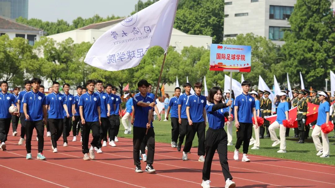 14:30,国旗、校旗、各公司(单位)代表队依次走过主席台,同济学子昂首阔步,展现出向上自信的同济青年形象,他们迈向的是美好的明天。