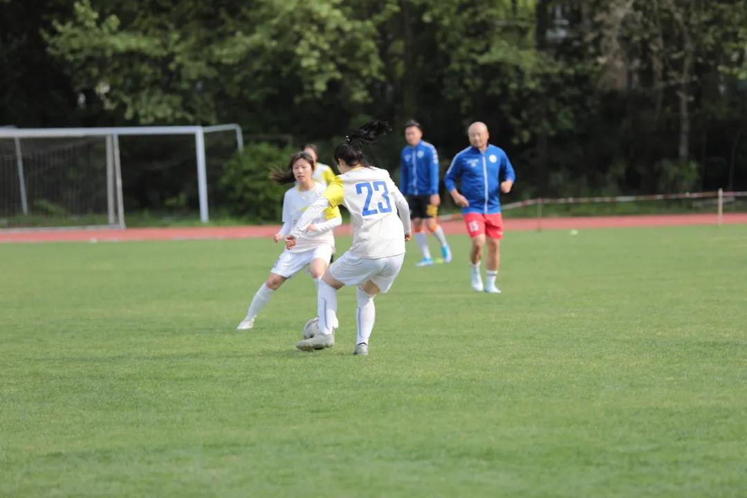 第46分钟,替补上场的马子苑同学很快适应比赛状态。并对女足中场的串联上起到了巩固和加强的作用。马子苑同学在空档处接后场原紫薇同学的传球后,略做调整即迅速送出关键传中,找到了大禁区弧附近的柯颖歆同学,柯颖歆同学看准球路落点不停球凌空垫射破门!2:1!