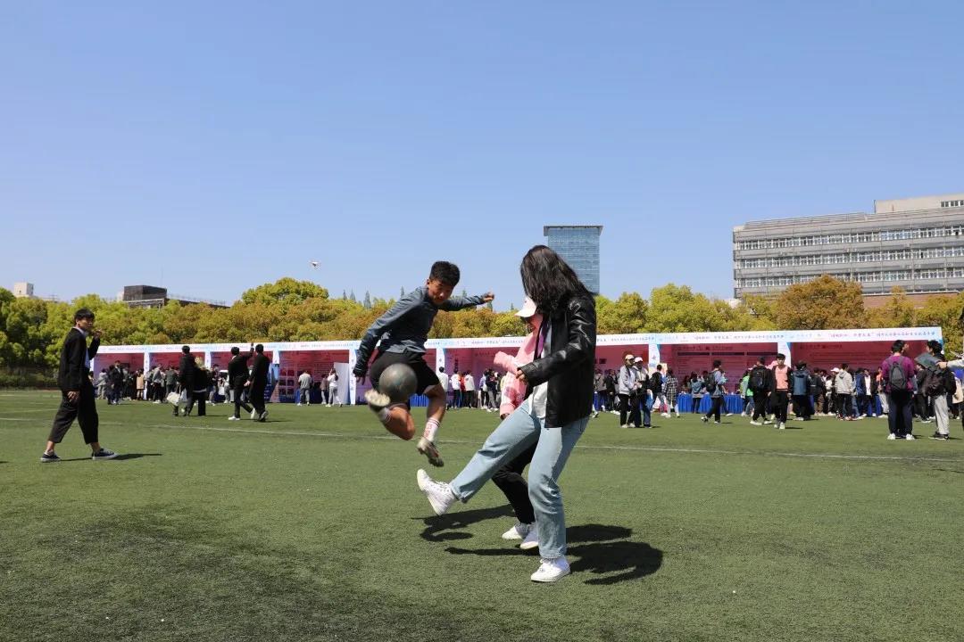 伟德bv国际体育的老师、同学们耐心地为前来咨询的同学们解答问题,还有一些同学们参与了颠球小游戏,赢取了奖品。