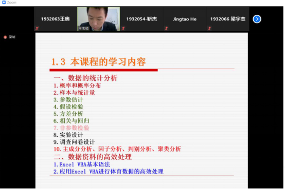王乐军老师通过zoom平台讲授数据高效处理与统计分析》课程