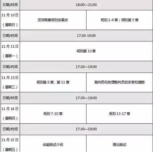 本期培训分5天进行,分别向学员进行足球竞赛规则发展史、足球规则讲解和结业测试。