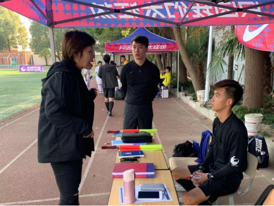 第一期裁判培训班优秀学员、伟德bv国际体育研究生刘畅同学(下图右二)被选派参加上海市校园足球联盟耐克冠军联赛,进行执法工作。