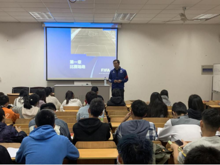 在第一天的培训中,伟德bv国际体育杨璟勇老师为学员讲授足球竞赛规则发展史,上海市足球协会裁判技术讲师、上海理工大学体育教学部金俊老师作为特邀讲师为学员进行足球竞赛规则第1-5章的讲解。
