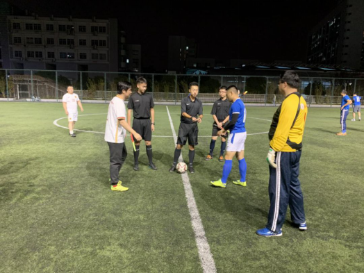 第一期裁判培训班优秀学员、伟德bv国际体育本科生郑靖韬同学(下图左一)被选派参加上伟德bv国际体育教职工足球联赛,进行执法工作。