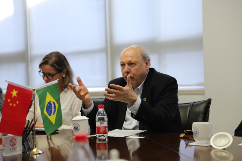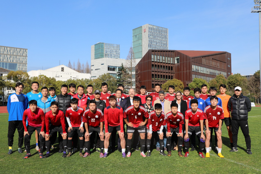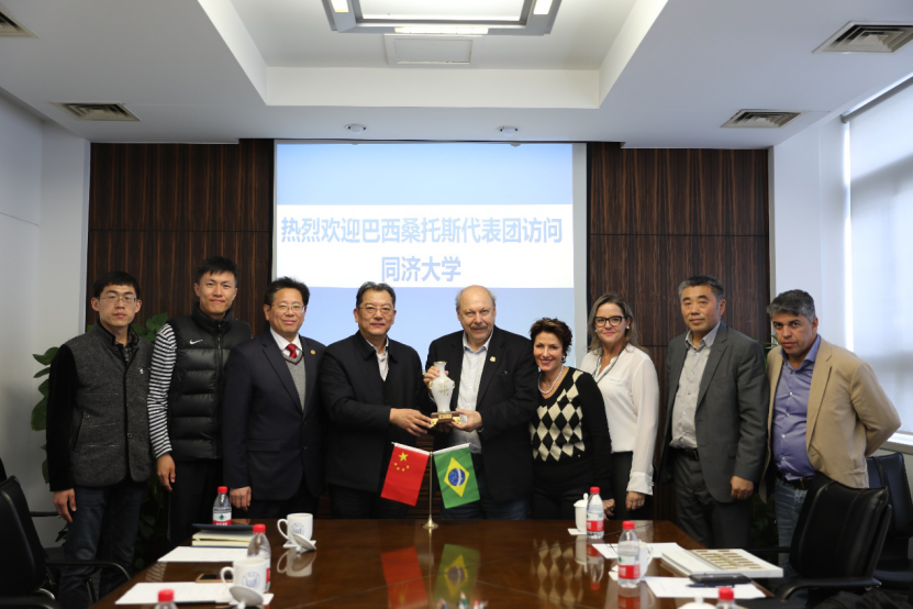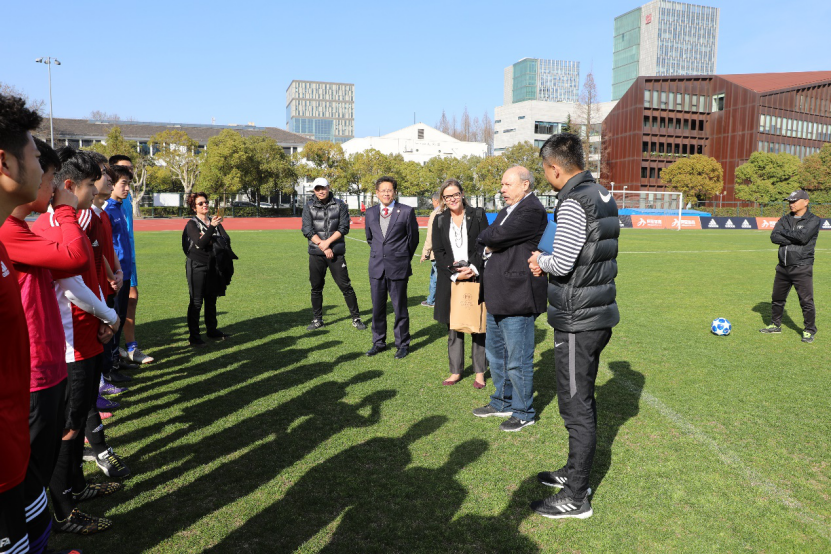 16:00桑托斯俱乐部的一行人来到逸夫楼215会议室参加交流座谈会。雷星晖副董事长进行致辞,向来宾表示了热烈的欢迎。
