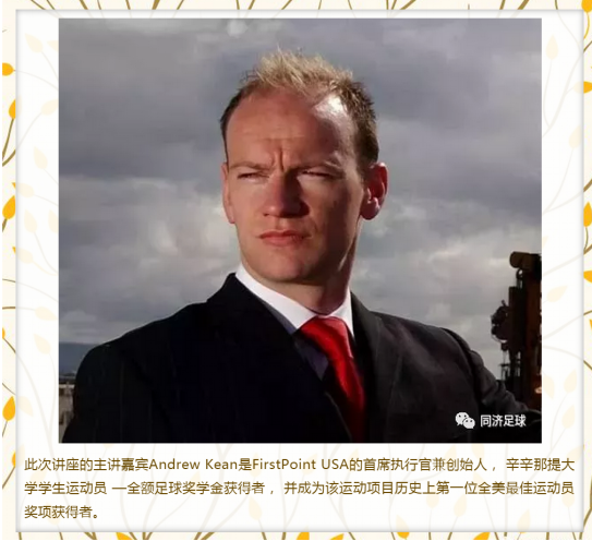 Andrew鼓励大家通过FirstPoint USA的平台申请奖学金,到美国进行深造。该机构是美国高校体育奖学金的世界领先人才选拔机构,获得了NCAA(美国老员工体育协会) 和AIRC(美国国际招生委员会) 的认证,为2500多所美国高校选拔、输送来自全球的体育人才。