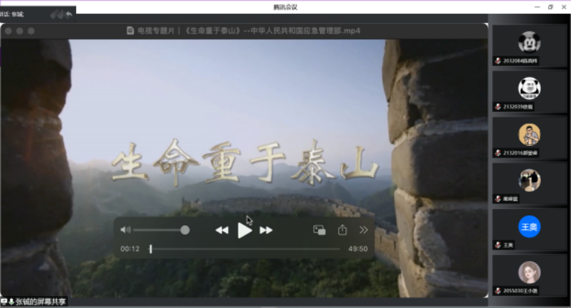 安全生产人人都是主角,没有旁观者。今年6月是第21个全国“安全生产月”,主题是“遵守安全生产法,当好第一责任人”。6月16日为全国安全宣传咨询日。张铖老师结合上海疫情形势指出:亲身经历过上海疫情的各位同学,对生命安全有了更深刻的理解和认识。希望每位同学都能牢牢树立安全底线,在生活和训练中将安全理念放在首位,遵循安全第一的原则,要求同学们人人关心安全生产、人人提升安全素质、人人履行安全责任。全体同学认真观看了中华人民共和国应急管理部出品的电视专题片《生命重于泰山——习近平总书记安全生产重要论述》,筑牢安全发展理念,切实提高安全意识和安全素质。