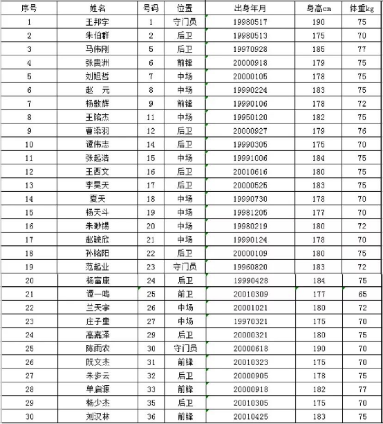 球员名单