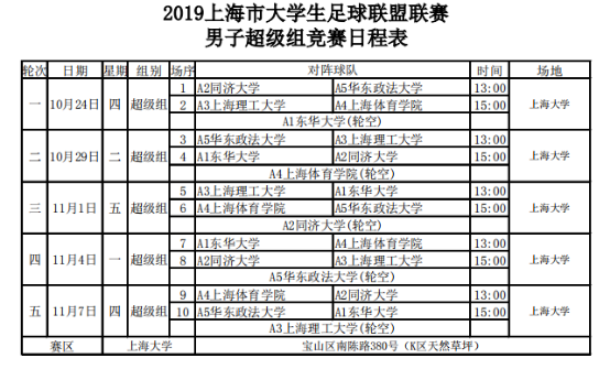 (备注:男子超级组原11月4日第四轮调整至11月12日举行。)
