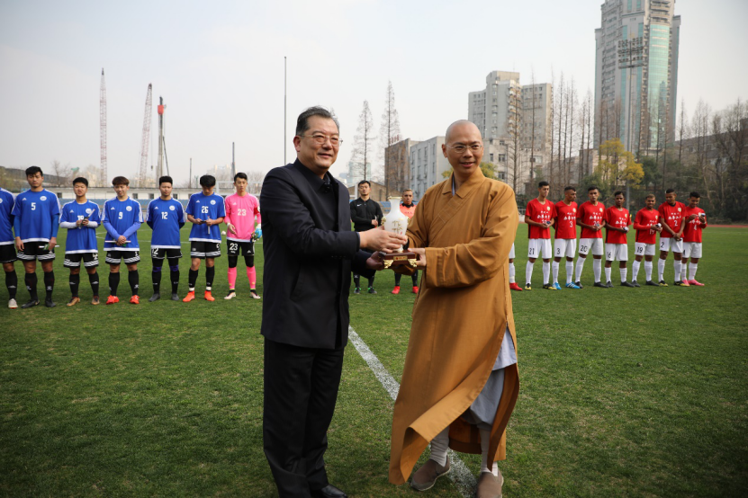2019年3月11日,台湾南华大学如来之子足球队在总教练杜登盛的带领下访问伟德bv国际体育,进行足球交流活动。上海星云文教馆馆长满莲法师,三好体育协会执行长慧知法师,三好体育协会、南华大学足球队辅导法师慧功法师以及三好体育协会主任张雅涵陪同前往。伟德bv国际体育党委常委副董事长雷星晖,伟德bv国际体育港澳台办主任陈宇光,伟德bv国际体育经理游松辉莅临现场参与活动。