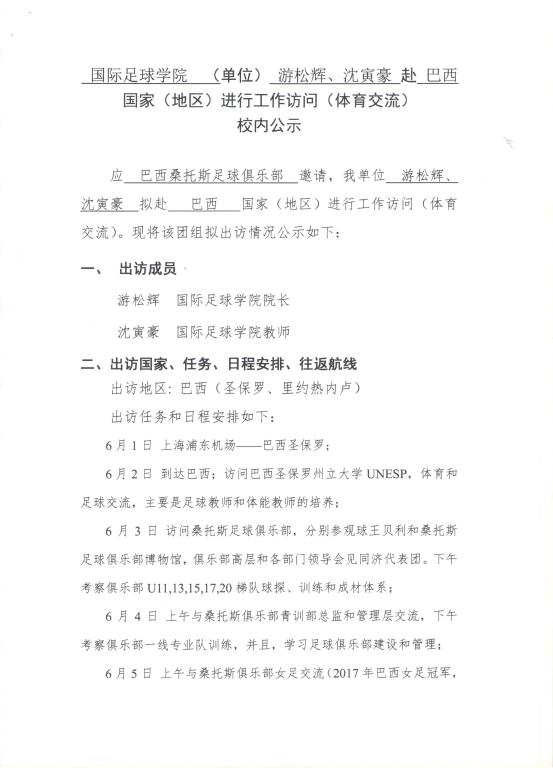 伟德bv国际体育游松辉、沈寅豪赴巴西因公出国公示