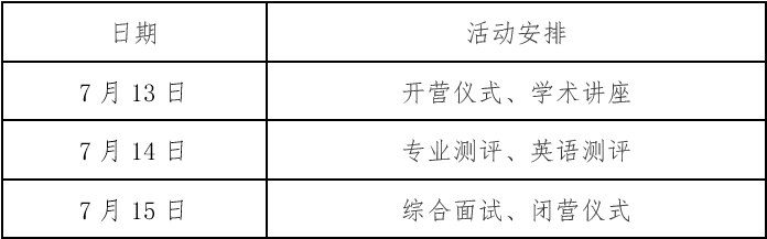 伟德bv国际体育组织考核小组,按照伟德bv国际体育研究生入学考试复试标准对营员进行考核。内容包括专业测评、专业英语、综合面试(满分350分),按总分从高到低排序评选出优秀学员。暑期公司活动结束后10个工作日内,在伟德bv国际体育主页上公布。
