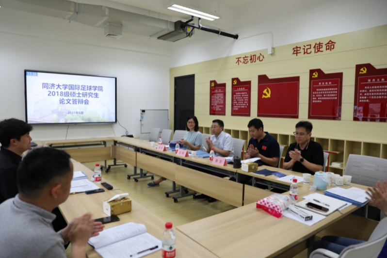 首先,张玉玺同学报告了自己的学位论文,题目是《德国足球强盛的体制机制研究》。随后,管垚同学报告了自己的学位论文,题目是《上海市职业足球俱乐部承担社会责任的动机研究》。卢汉武同学报告了自己的学位论文,题目是《府际关系视角下上海市校园足球政策执行问题研究》。最后,陈荣志同学报告了自己的学位论文,题目是《2019年国际老员工体育联合会足球世界杯中国球队与八强球队进攻特征比较研究》。
